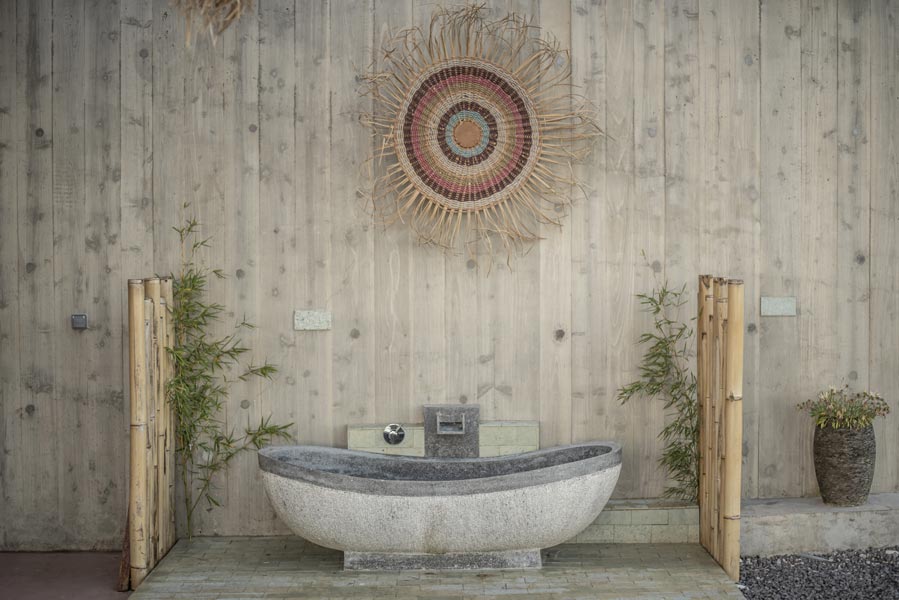 Outside is a large table to gather round as well as a barbecue for lazy lunches or entertaining evening fun. For when you want to unwind even more, a stone bath next to a waterfall allows you to bathe outside in heated water plus stylish sun-loungers are located outside each of the bedrooms. If you want a relaxing walk in nature, our private forest is right next to you.