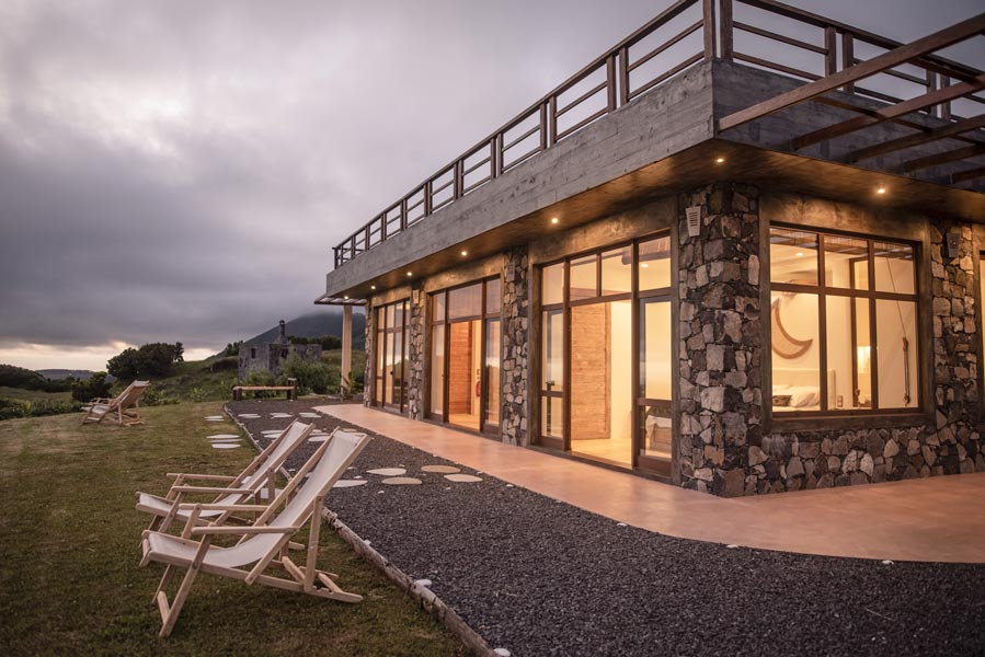 With dramatic floor-to-ceiling windows, access to the outside from every room and 360-degree vistas of the entire island, you will fall in love with this holiday escape. A skylight opens up to a living roof, where marigolds, aromatic herbs and medicinal plants bloom - a living space that’s perfectly integrated with nature.